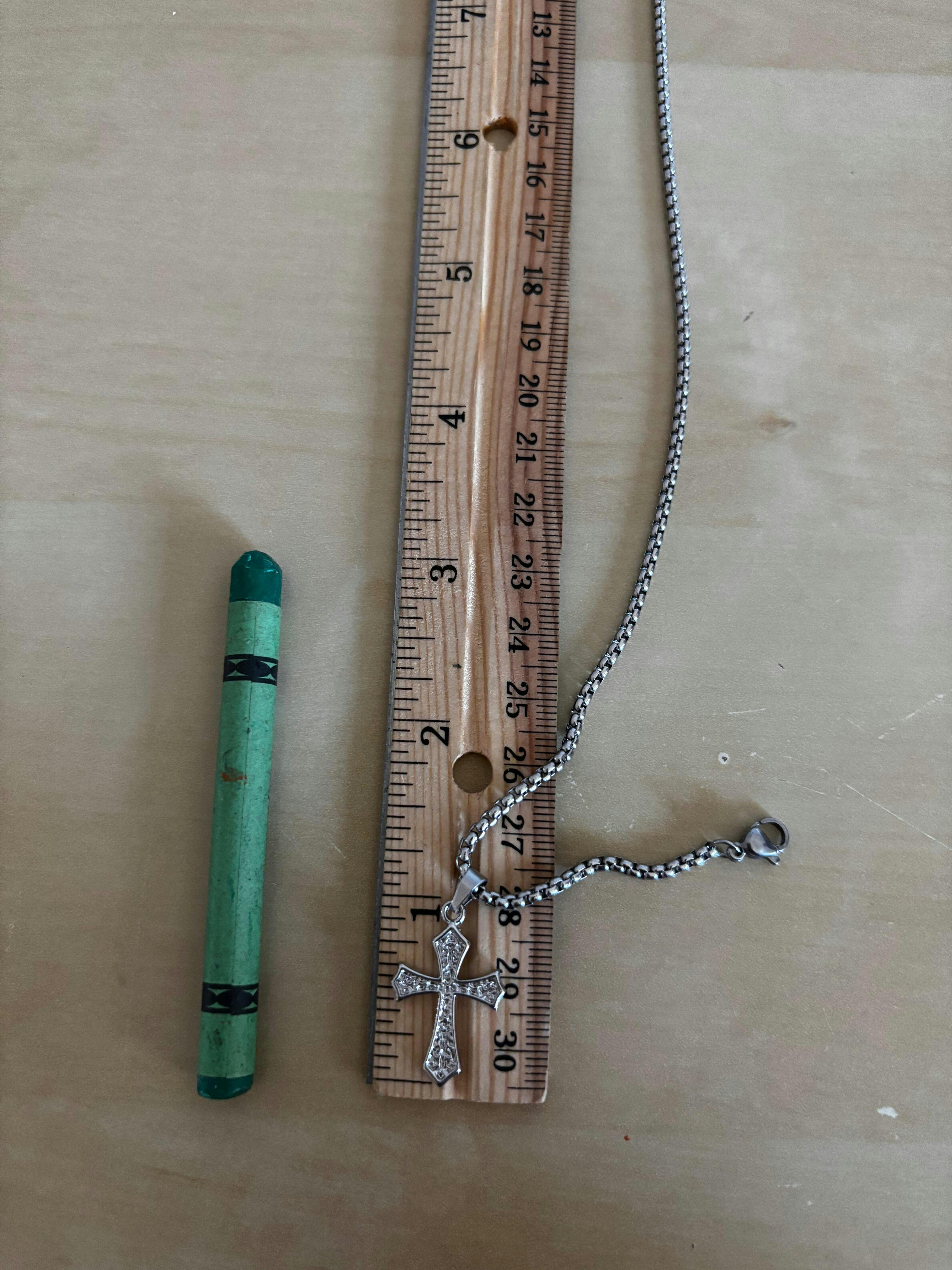 Clo I had my mom buy it for me and I think it’s really beautiful. It’s not too big or flashy, but still looks really nice. The charm is only about an inch long, I like the little designs in the cross.